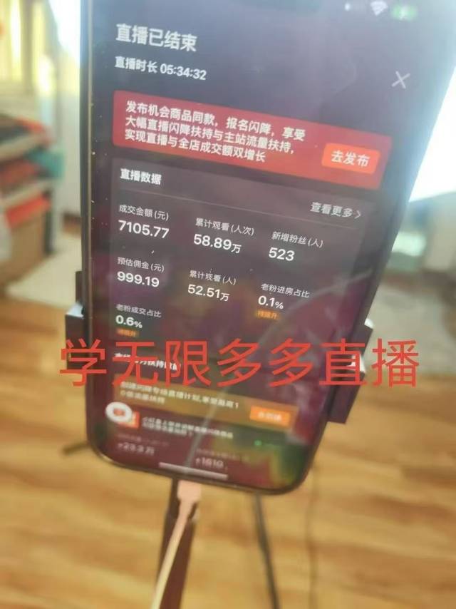 拼多多直播带货,免费教学,大流量扶持,第一天学第二天开播,一个手机一个支架就可以,18周岁-70周岁均可,男女都可以播,时间自由,保证每天最少播一个小时就可以(要不第二天上播流量会下滑),你只负责播,公司负责发货售后,都不用你操心,上万种商品可播。