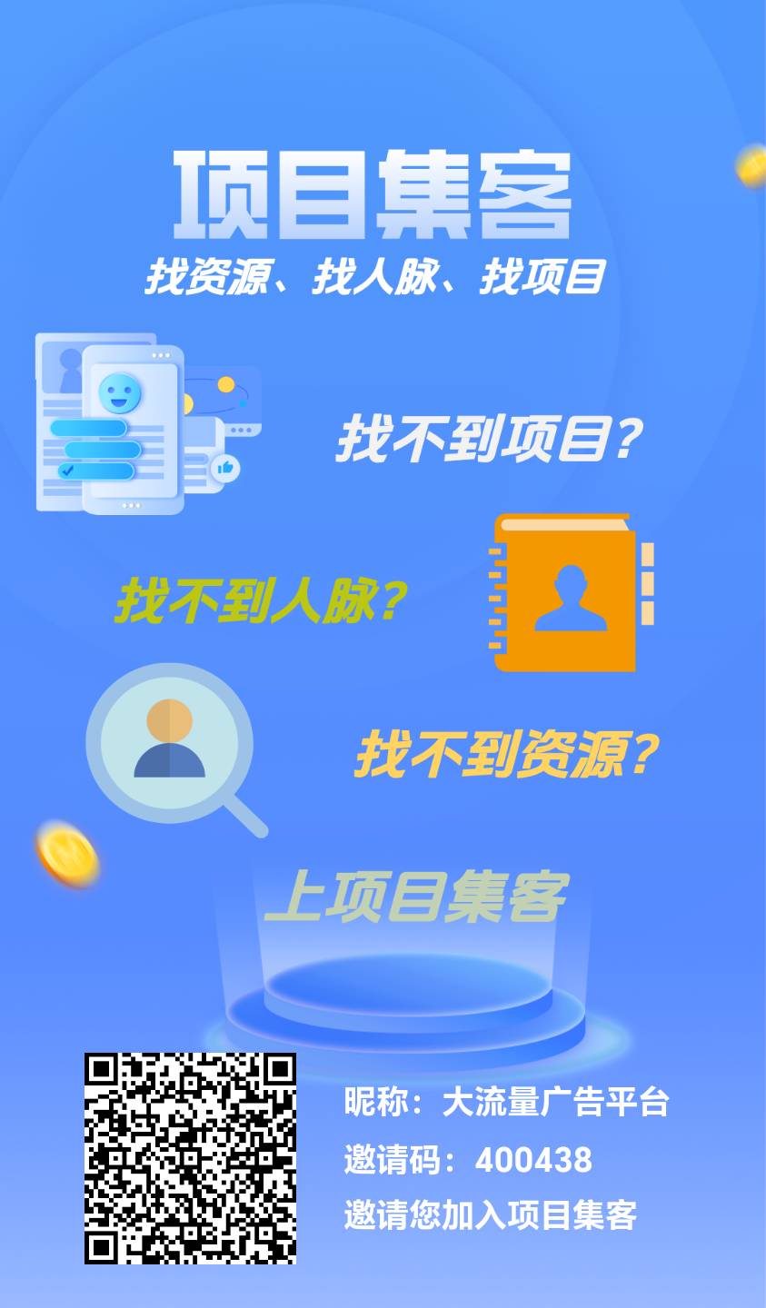广告引流平台,目前已积累500万用户,拥有几千个社群,刚上架浏览得红包板块!每天流量非常大! 入驻平台免费发布广告,新用户免费体验一天头条!免费刷新5次,找项目 缺人脉 都可以来看看! 拉新一个高达34元