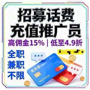 项目介绍:本公司合作四大运营商,主营话费优惠推广,4.9折慢充,9.5折,9.8折秒到,多种折扣充值套餐都有,产品非常具有优势,旗下产品还包括电影票优惠,视频vip优惠,点餐优惠等,目前全国范围内招聘1000名兼职,看我上传的图片,内容比较完善。